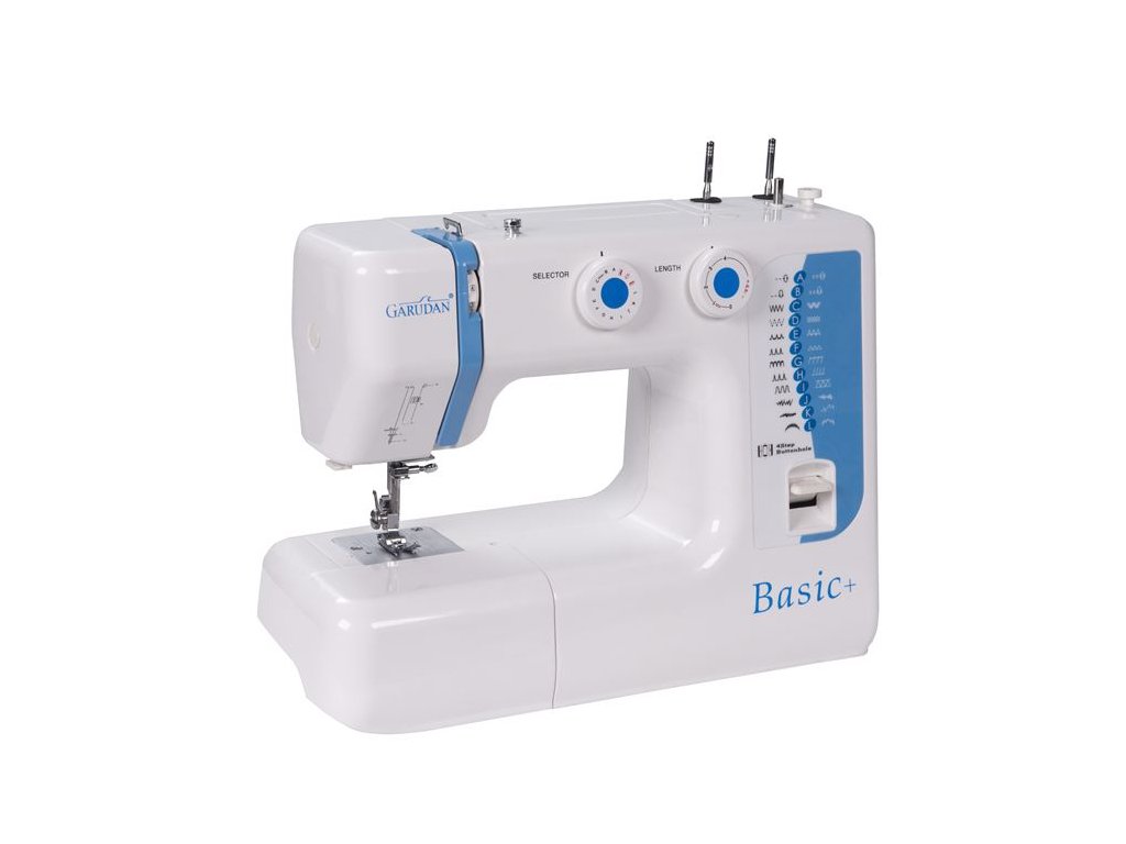Garudan Basic + je šicí stroj s jednoduchým mechanickým ovládáním, jeho zvýšený výkon 80 W prošije i těžší materiály, oceníte 24 vzorů včetně dekorativních plus 4-krokovou knoflíkovou dírku, výkonné LED osvětlení nesmí chybět, abyste na šití dobře viděli.