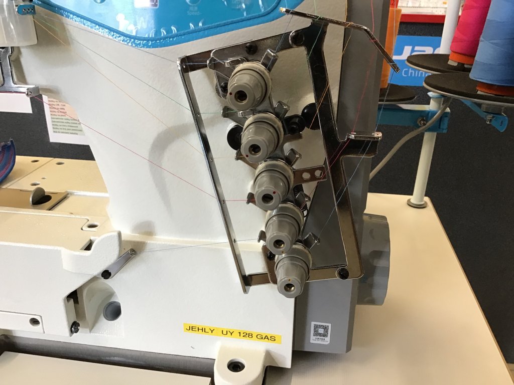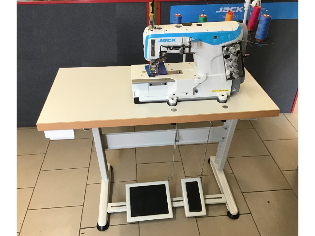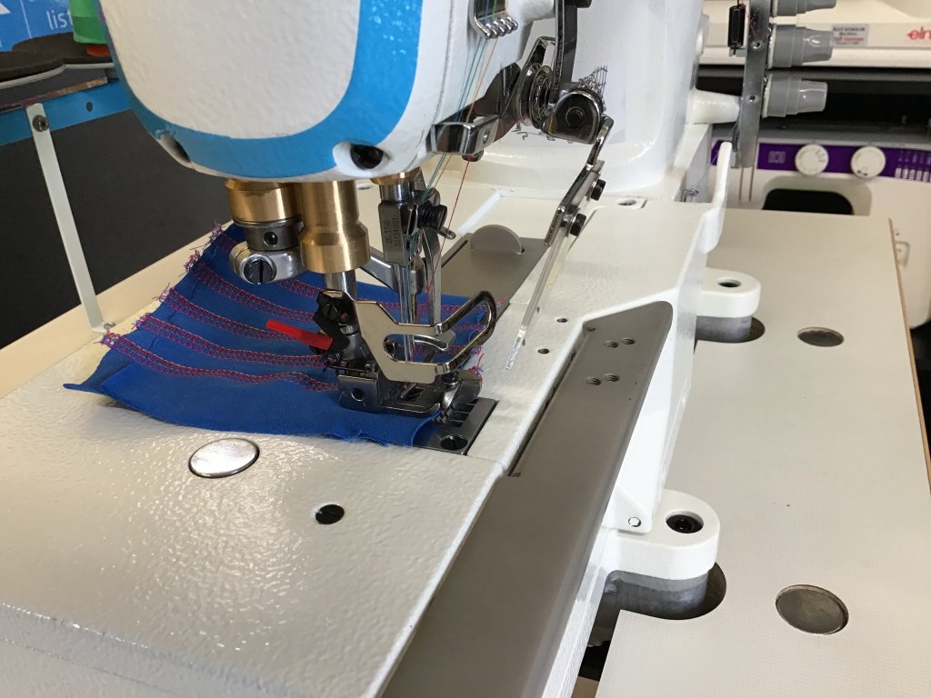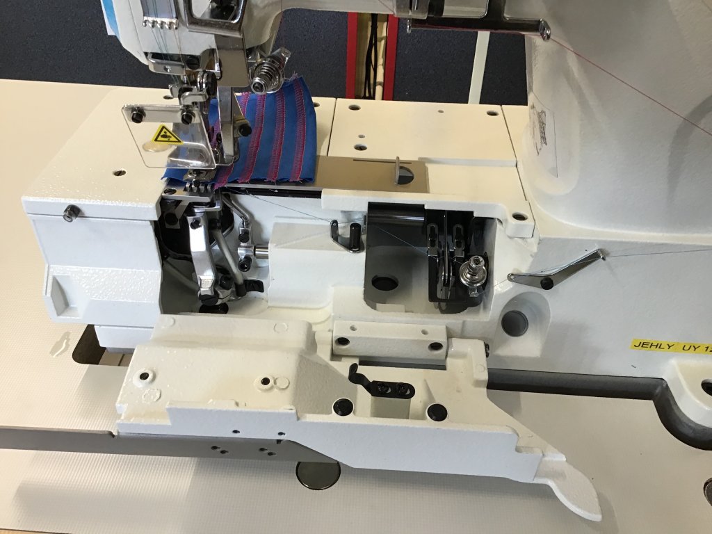 rozpich mezi krajními jehlami 5,6mm, diferenciální podávání pro snadné šití úpletů a dalších elastických materiálů, komplet s výškově stavitelným stavcem a deskou 105x55cm s ABS hranou a povrchem speciaelně určeným pro textilní průmysl, stroj je vybaven integrovaným servomotorem Direct Drive s úsporným provozem (když nešijete tak nespotřebovává energii), napájení 1x240V