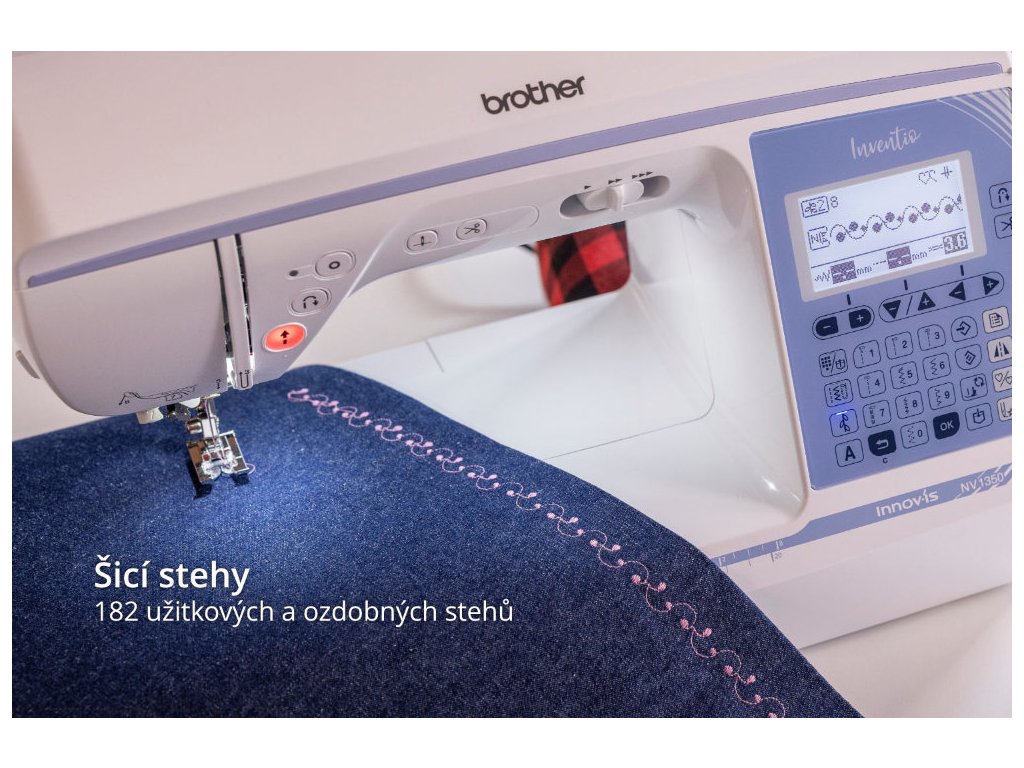 Oproti nižšímu modelu Brother NV 1150 má automaticky přednastavené napětí nitě pro každý steh a také možnost šití do strany - doleva, doprava, širší stehy a vyšší písmenka abecedy (i malá písmena).