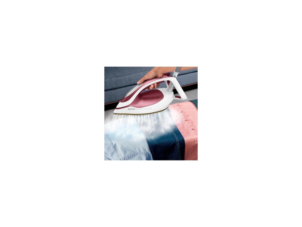 Díky působivému parnímu rázu 590 g/min si Tefal Pro Express Ultimate II snadno poradí i s těmi nejodolnějšími záhyby. Tento koncentrovaný příval páry proniká hluboko do vláken a zajišťuje rychlé a účinné vyhlazení textilií. Parní ráz je ideální pro silné tkaniny nebo více vrstev a umožňuje dosáhnout profesionálního výsledku žehlení za kratší dobu.